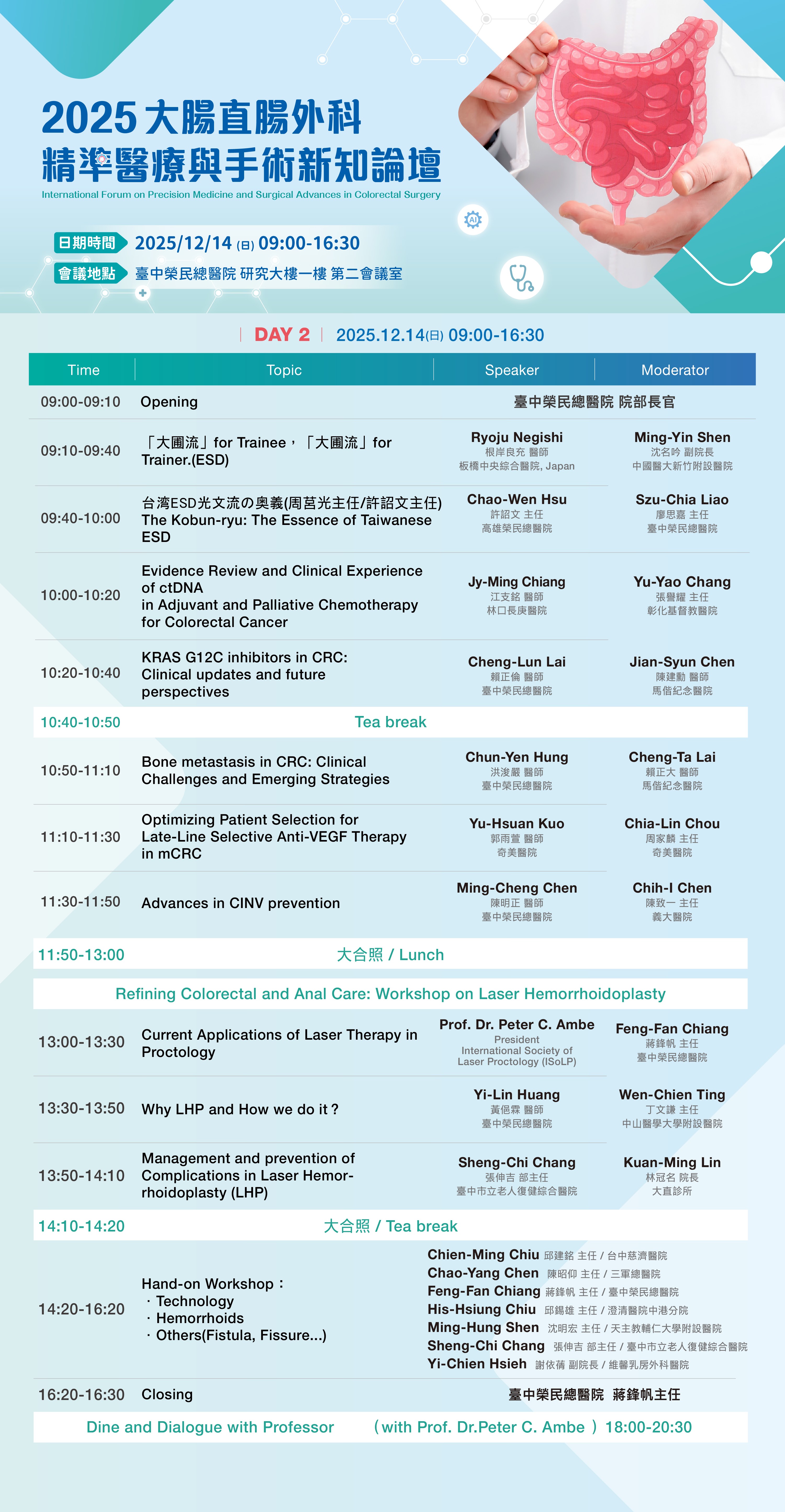 主辦單位:臺中榮民總醫院外科部大腸直腸外科