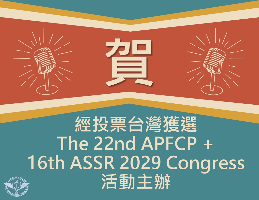 賀 台灣獲選 The 22nd APFCP + 16th ASSR 2029 Congress 活動主辦