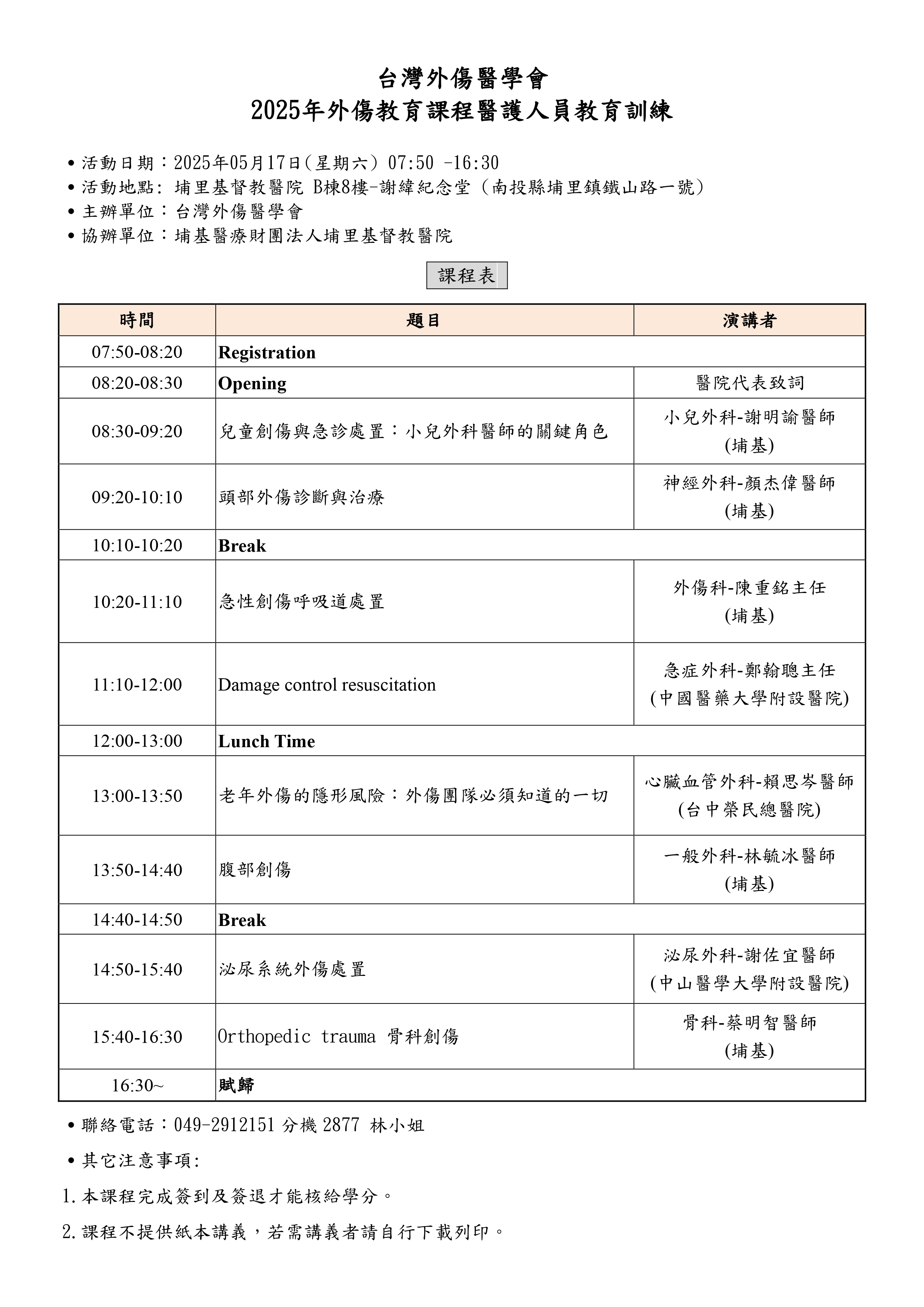 2025年外傷教育課程醫護人員教育訓練