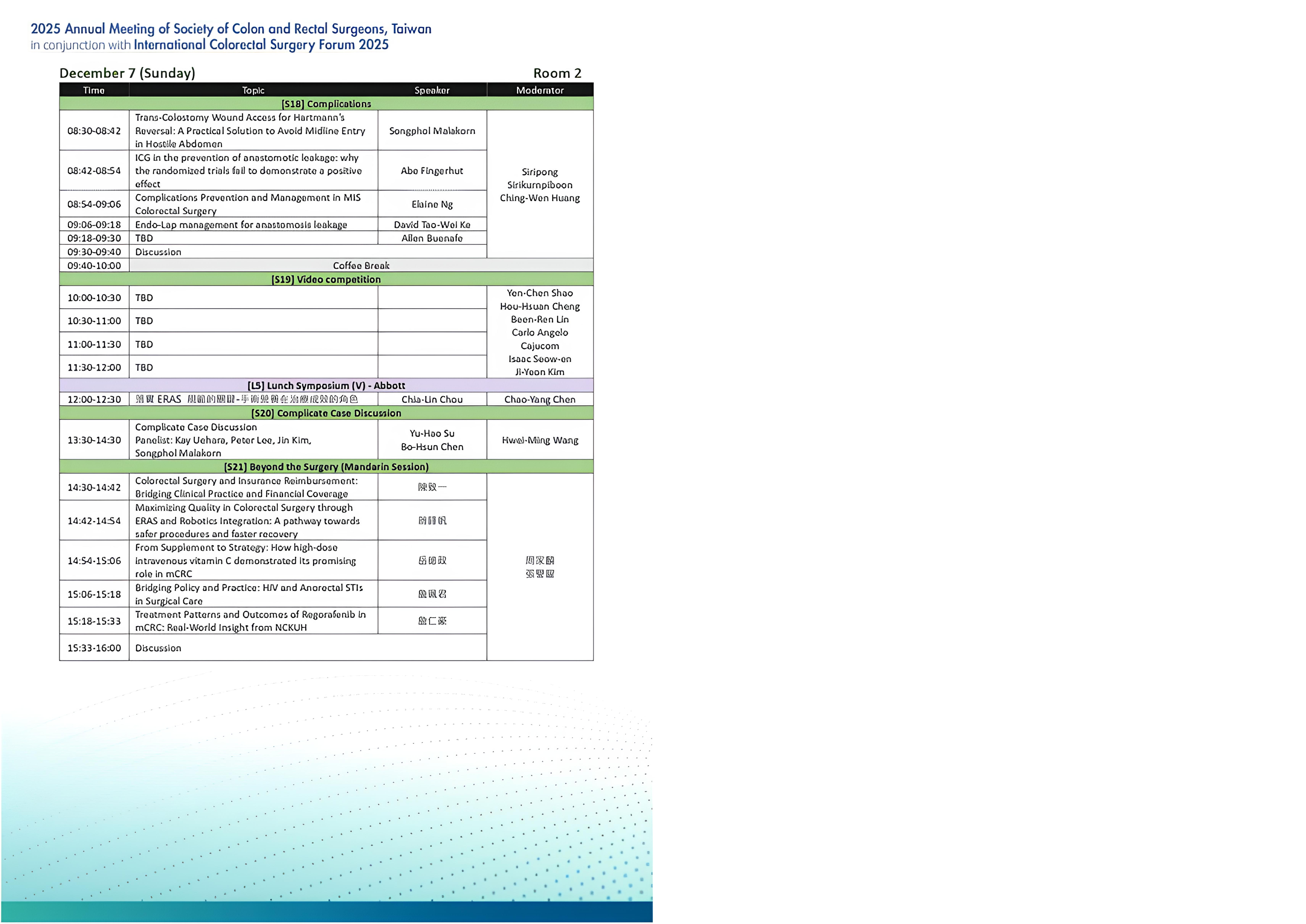 2025 Annual Meeting of Society of Colon and Rectal Surgeons, Taiwan (大腸直腸外科年會)
